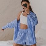 Home Dresses Blue And White Striped Lapel Casual Suit