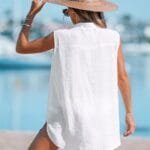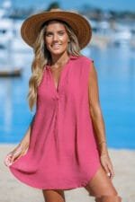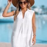 European And American Shirt Deep V Neckline Solid Color Beach Sun Protection Dress