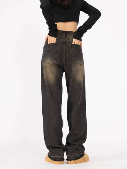 Fashion Straight Wide Leg Jeans Casual High Waist Non Elastic Women’s