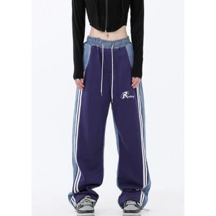 Patchwork Jeans American High Street Loose Wide Leg Hip Hop Sports Casual Pants