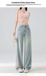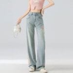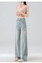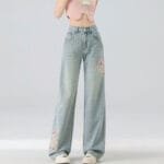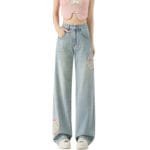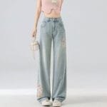 Home Woman Jeans High Waist Straight Niche Design Embroidered Mopping Wide Leg Trousers
