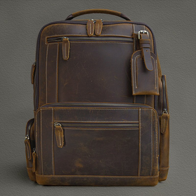 Retro Large Capacity Crazy Horse Leather Backpack Men