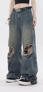 Punk Wash Denim Distressed Straight-leg Trousers Street Fashion Retro $34.76