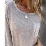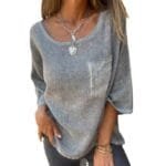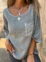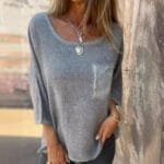 European And American Round Neck Solid Color Temperament Folding Loose Women’s Tops