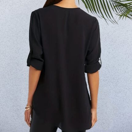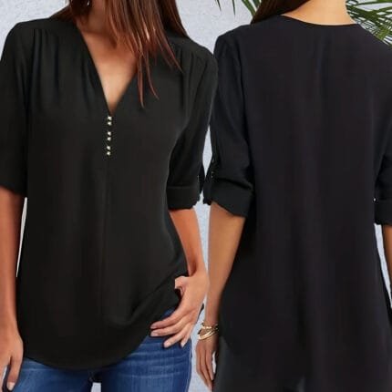 V-neck Rhinestone Casual Loose Women’s Wear Rollable Sleeves Top