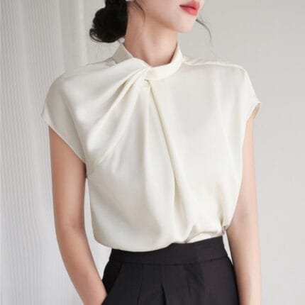 Design Sense Niche Pleated Temperament Commute Stand Collar Shirt