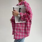 Women's Preppy Style Sweet Pink Striped Loose Outer Cotton Shirt $32.63