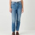 Home Woman Jeans Women’s Retro And Fashion All-matching Slim Blue Straight Hip Raise Slim Fit Jeans