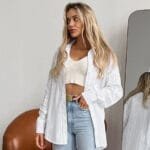 Be the first to review “Women’s White Cotton Jacquard Lapel Loose Casual Shirt” Cancel reply